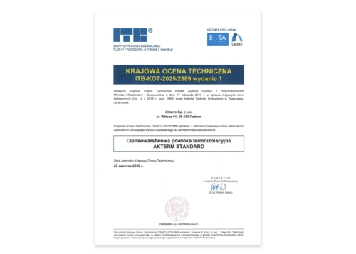 AKTERM Standard z pozytywną oceną Instytutu Techniki Budowlanej!